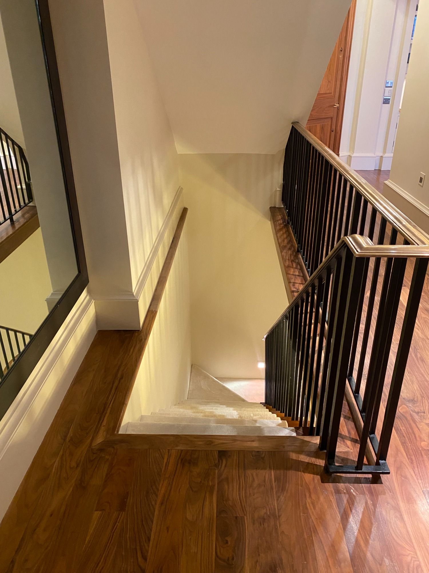 A wardrobe door in the property had been discoloured from sun exposure over time and required refurbishment. The door had a shiny finish which a topcoat would not have adhered to, so an Ultra Grip Primer base was first applied before the application of a laminate top coat to return the door to it's original appearance.